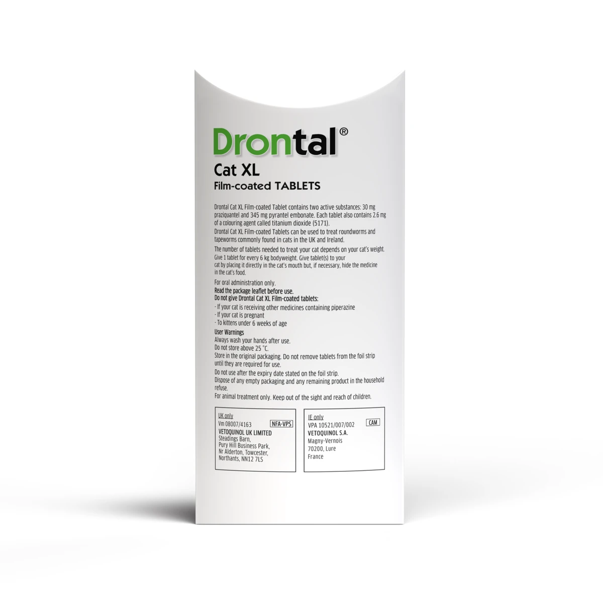 - All-Round Worm Elimination: Drontal Cat XL Tablets wipe out the entire spectrum of intestinal worms commonly found in UK cats, including roundworms and tapeworms.