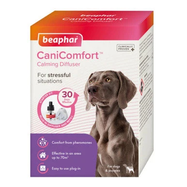 The Beaphar CaniComfort Calming Diffuser is a simple and effective solution to reducing problem behaviour in dogs, such as barking, furniture destruction, urinary marking, excessive licking and scratching, or general feelings of anxiety.