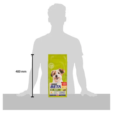 Being a Real Dog for small breeds means being active and always ready to explore the big world around them, so they need a food that can properly fuel their natural enthusiasm for life. That is why our Purina Beta® tailored nutrition for small breeds adult dogs includes essential vitamins and minerals to support strong bones. It is also specially formulated with selected natural ingredients and natural prebiotic to help support digestive health keeping your little adventurous dog in great condition every day! And all this without including any added artificial colours, flavours and preservatives.