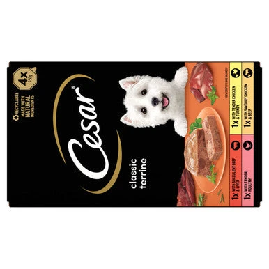 Cesar Classics is a range of timeless and authentic recipes, lovingly created over 25 years. This high quality wet dog food with Beef & Liver, Chicken & Turkey, Turkey & Lamb, Veal & Poultry consists of delicious tender loaves that will turn your dog’s mealtimes into joyful moments for them, and for you. Chicken dog food, beef dog food, lamb dog food, turkey dog food and veal dog food available in multipacks of 4 and 8.