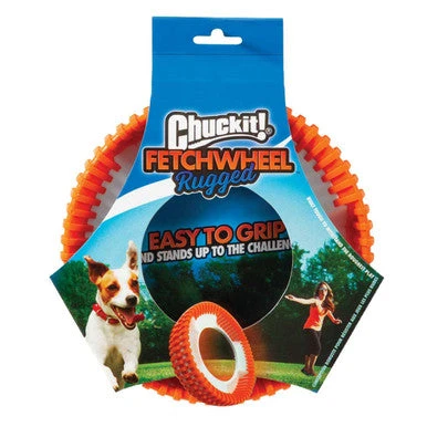 Make fetch happen with the Chuckit!® Rugged Fetch Wheel®! Designed with the durability of a rigid core and the added strength of durable ridges, the Rugged Fetch Wheel engages a dog’s natural instinct to chase and catch. Built tough to withstand the roughest play, the wide shape is easy to get rolling with underhand or overhand throws. Great for land or water play, the bright colours provide increased visibility to help prevent the toy from getting lost. Built tough to withstand the roughest play, the wide shape is easy to get rolling with underhand or overhand throws. Also floats, making it great for both land and water play.