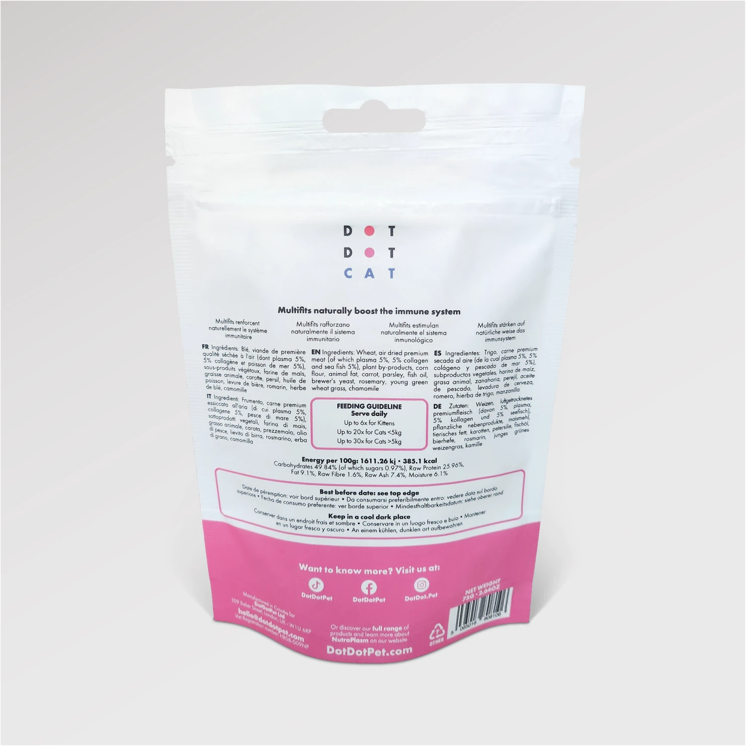 Give your cat the daily nutrition they need with DotDotPet’s vet endorsed Multifit Multivitamins cat supplements —a delicious and nutritious way to support their overall well-being. Containing Plasma and Collagen packed with essential vitamins and minerals to keep your furry companion active, playful, and full of energy every day.