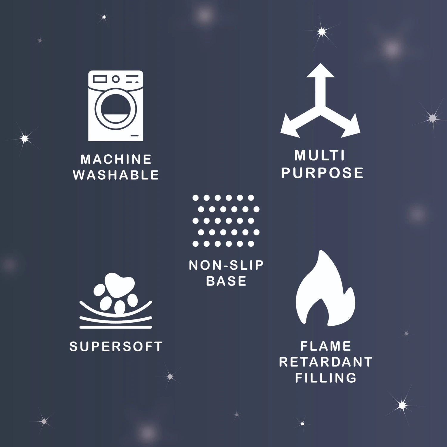 Material: 100% polyester, Outer : velvet fabric, Inner :sherpa fleece, Bottom:non-slip bottom, FR White Filling