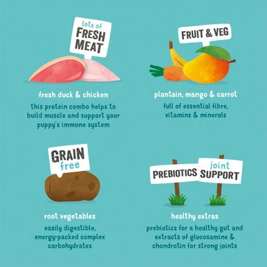 We only use fresh meat in our kibble – meaning nothing processed or dried, and absolutely no meal or bone. By mixing in a few tasty extras, like lots of healthy fruit, veg and berries, we’ve created a well-balanced kibble that gives dogs everything they need. Carefully baked at a low temperature, we lock in the goodness and make it easily digestible. Packaged in 100% biodegradable bags, its naturally tasty dog food that you, your pets and our planet can feel good about. Please note the 12kg bag contains large kibble.