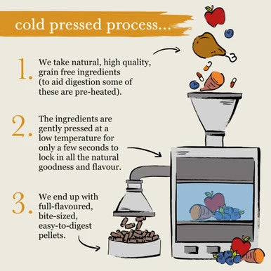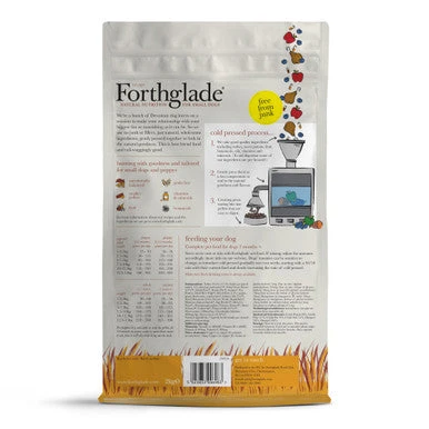 Forthglade Cold Pressed Dry Dog food uses carefully selected, natural ingredients, bursting with goodness. The ingredients are gently cold pressed to produce delicious, easily digestible, grain free, dry food thats great for your four-legged friend’s long term gut health.