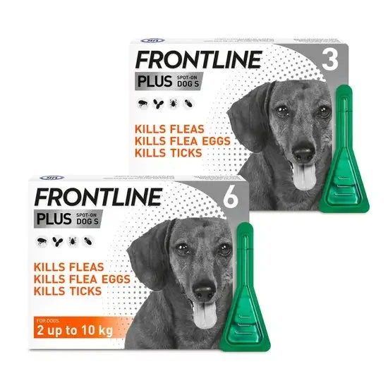 FRONTLINE PLUS® Spot-On Flea and Tick Treatment for Small Dogs (2kg-10kg) is a highly effective topical solution that targets and eliminates fleas and ticks through direct contact. This means fleas and ticks do not need to bite your dog to be killed. Suitable for use on dogs from 8 weeks old, weighing at least 2kg, and safe for pregnant and lactating dogs.