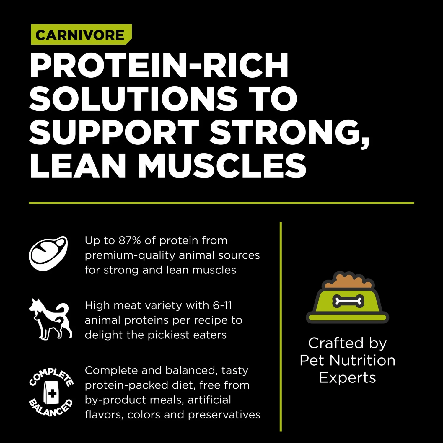 - No artificial colours, flavours, preservatives, by-product meals, wheat, corn, or soy.