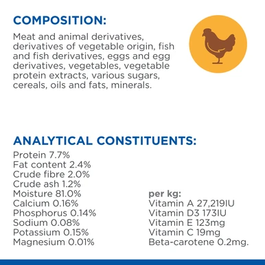 Whether your cat has a noticeable weight issue, or you would just like to keep your feline friend at a healthy weight, Hill’s Science Plan Perfect Weight wet cat food provides your adult cat with delicious, breakthrough weight management nutrition. With a savory chicken flavour, this food helps your cat maintain their weight and will provide long lasting weight support. This cat food is made with high quality ingredients and provides high-quality protein that will keep your cat satisfied between meals while maintaining lean muscle. There’s more to love with the new look of Hill’s Science Plan. Some of our products also have new names, new kibble shapes & new formulas.