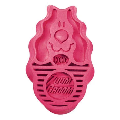 The KONG ZoomGroom(TM) is a flawless tool when it comes to cleaning the dog whilst in the bath. Small rubber teeth help to clean through coats and massage the skin to keep the dog comfortable. The Kong ZoomGroom(TM) helps make it easier to get your dogs clean. While shampooing use the ZoomGroom(TM) to clean your dogs’ coat. The 3/4 inch rubber fingers reach through the coat to massage the skin, stimulating capillaries and natural oil production leading to a healthy coat for your dog.