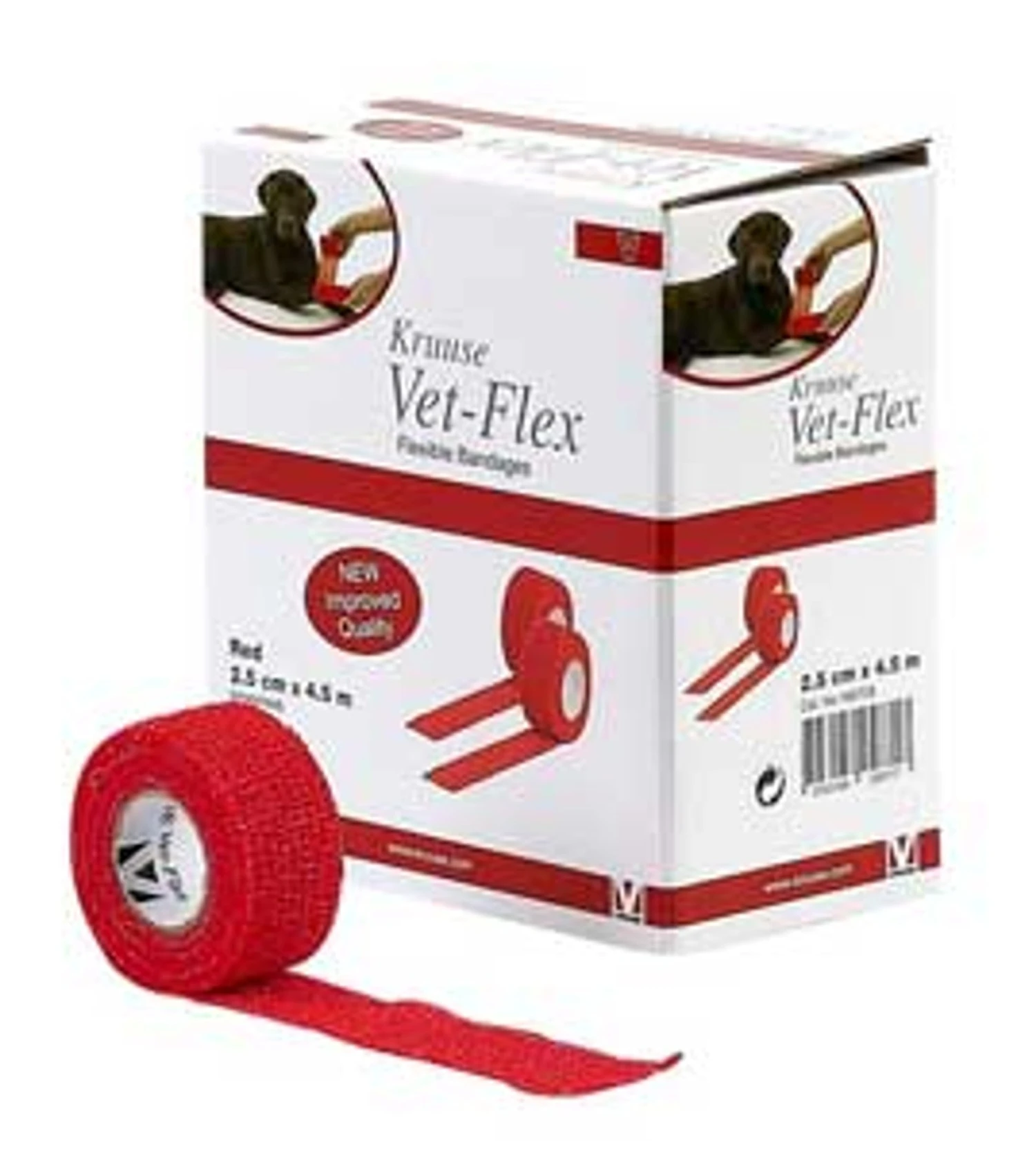 KRUUSE Vet-Flex, Red, 2.5 cm x 4.5 m, 10/pk