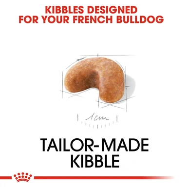 Exclusive Kibble: Special Brachycephalic Jaw A kibble exclusively designed to make it easier for the French Bulldog puppy to pick up and to encourage him to chew.