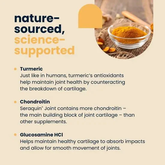 Seraquin® Joint Chewable Tablets (800mg) are expertly formulated to support joint health and mobility in cats and small breed dogs under 10kg. Whether your pet is aging, showing signs of stiffness, or simply in need of extra joint care, these high-strength chewable tablets provide a science-backed blend of Glucosamine HCl, Chondroitin, and Turmeric (Curcuminoids) to nourish and protect cartilage, helping your pet stay active and comfortable.