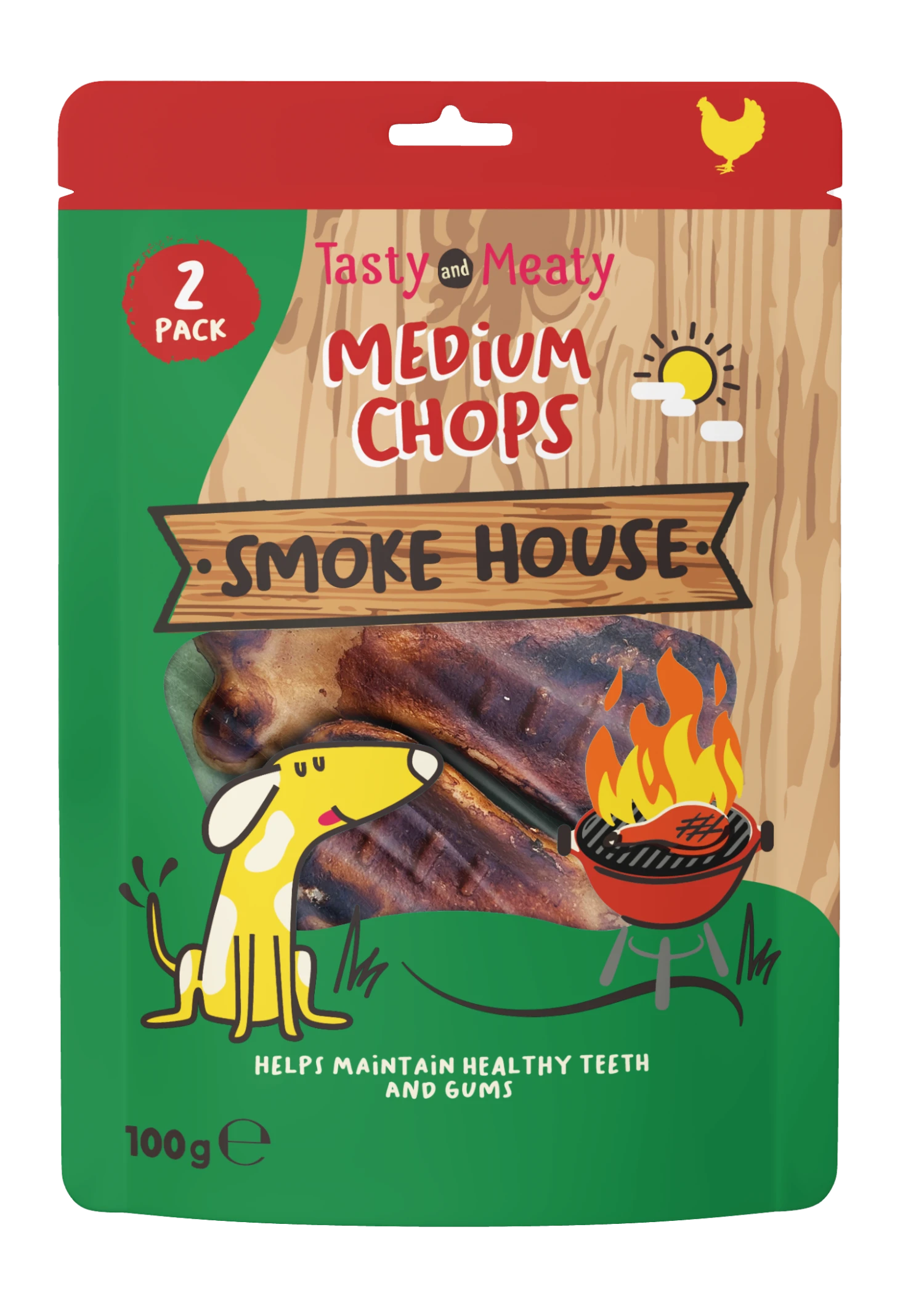 The Tasty & Meaty Smokehouse Chops contain no artificial colours and are completely rawhide-free, yet they are still packed with the rich, smoky flavour dogs crave.