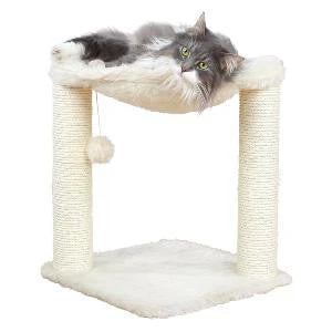Trixie Baza Scratching Post Cream is a small cat tree with a comfortable hammock for cat naps. Ideal for kittens and those cats with reduced mobility, the post is low to the ground and also has a plush ball attached for extra play. Each pole is wrapped with natural sisal.