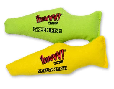 Yeowww! Peeled Green Fish cat toy. Durable cotton twill cover is stuffed with special 100% organically grown catnip – no fillers and no chemicals.