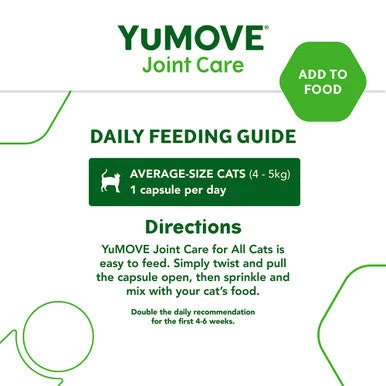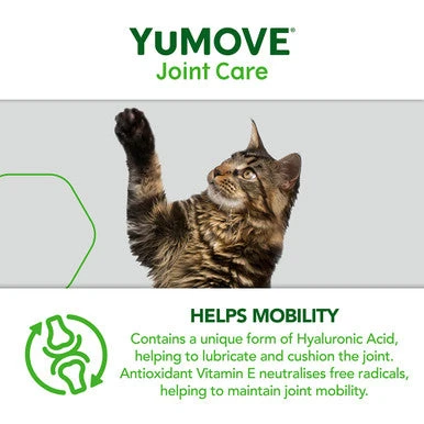Recommended for cats that are getting older or beginning to show joint stiffness, YuMOVE Joint Care for All Cats works to keep your cat active for life in three ways – soothing stiff joints, supporting joint structure and helping mobility.