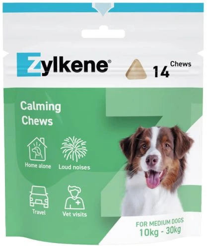 Zylkene Chews help your pet to cope in a stressful situation. The first milk derived nutritional supplement, it contains alpha-casozepine which helps to promote relaxed behaviour. This can help in situations like moving house, or even calming your pet down for training and learning new behaviours. A pack of chews contains 14 pieces, with 1 piece being equal to one dose.
